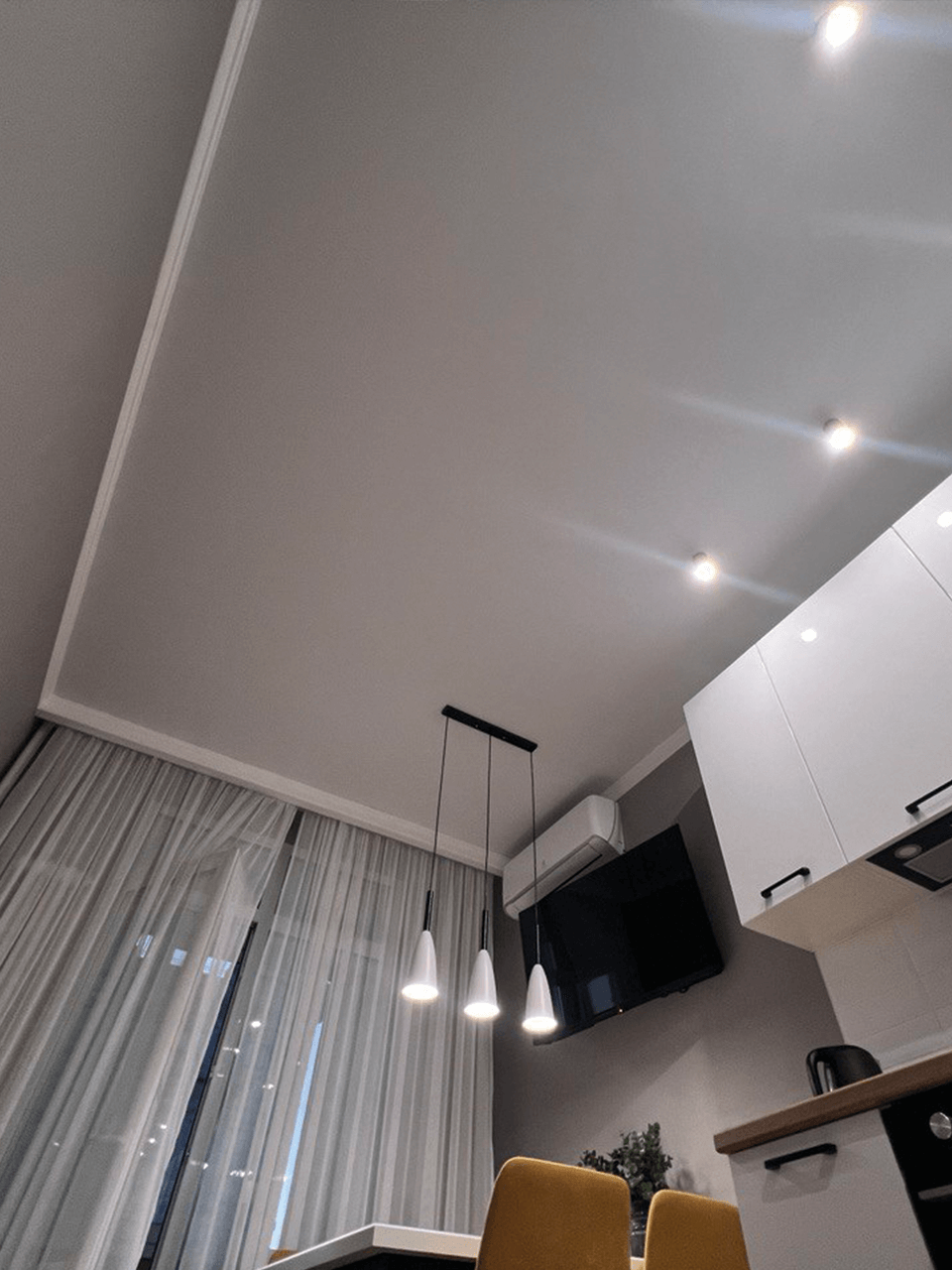 Наша команда состоит из профессиональных мастеров, которые выполнят монтаж потолка "под ключ" быстро и качественно. Количество углов и сложность конструкции не зависит от качества выполненных работ. Мы гарантируем, что ваш потолок будет выглядеть безупречно.