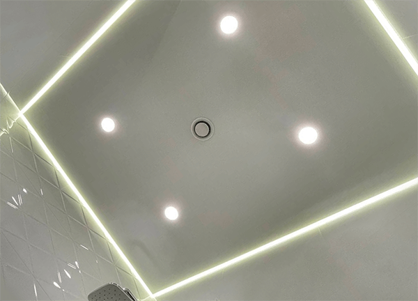 Световые потолки особенно эффектно смотрятся в ванной, прихожей и гостиной. При выключенном свете полотно обычное – белое и ровное. При включенном у полотна появляется мягкий свет по всем периметру.