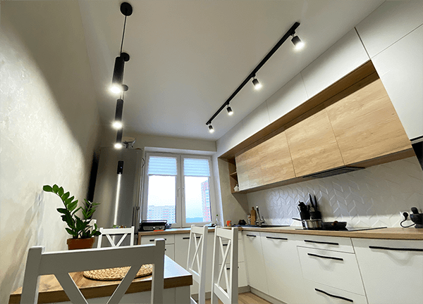 Трековое освещение излучает равномерный качественный свет, не создает дополнительного шума, что очень важно как для работы, так и для отдыха.