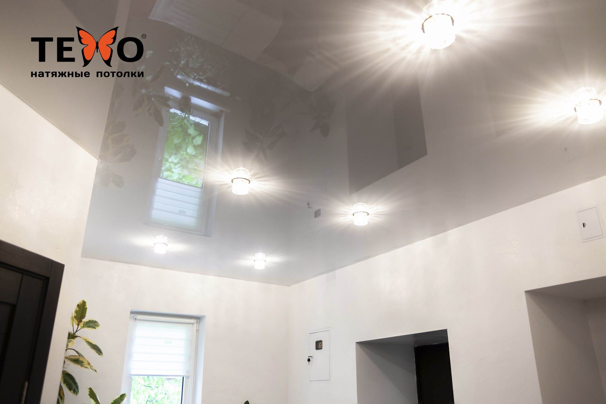 Мы решили сделать в этом помещении одноуровневый белый глянцевый потолок. Глянцевое полотно, за счет своего свойства отражения сделает коридор визуально выше, больше и светлее. А универсальный белый цвет идеально сочетается с любым цветом стен и дверей. Достаточно часто у нас спрашивают: в каких помещениях можно устанавливать натяжные потолки? Натяжные потолки можно устанавливать во всех помещениях, в том числе в ванной или туалете. Исключение составляют помещения с высокими температурами, а также неотапливаемые помещения, где температура может опускаться ниже нуля. Натяжным потолкам не страшна высокая влажность.