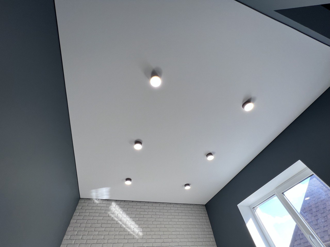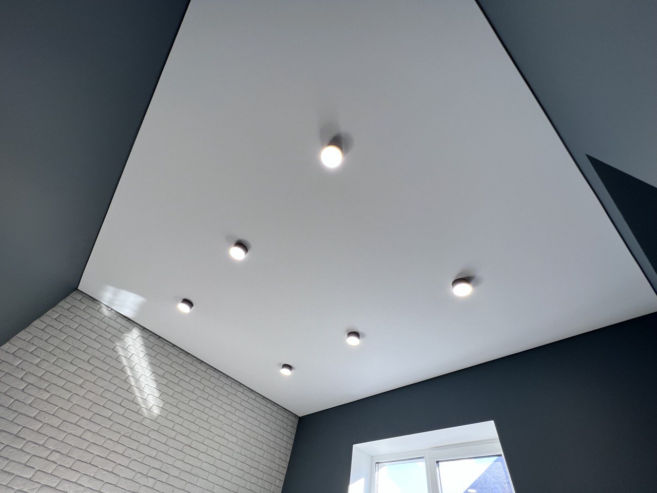 По периметру установлен теневой профиль, который добавляет современный акцент в дизайн и подчёркивает чёткие линии интерьера.