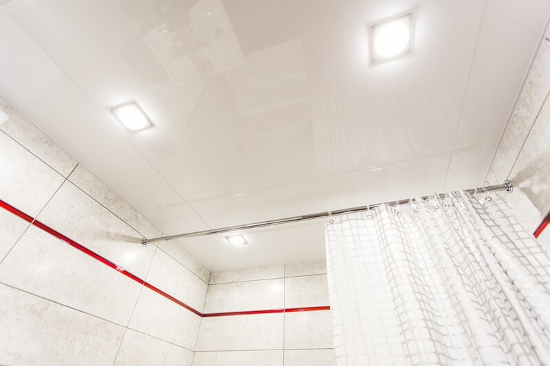 Ванные комнаты и санузлы – это помещения с нестабильным микроклиматом. При этом в данных помещениях риск затопления соседями сверху существенно возрастает. Исходя из перечисленных факторов, отделка потолка должна происходить прочными материалами, устойчивыми к перепадам температур, и поддающимися ремонтным работам.