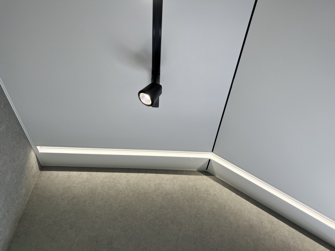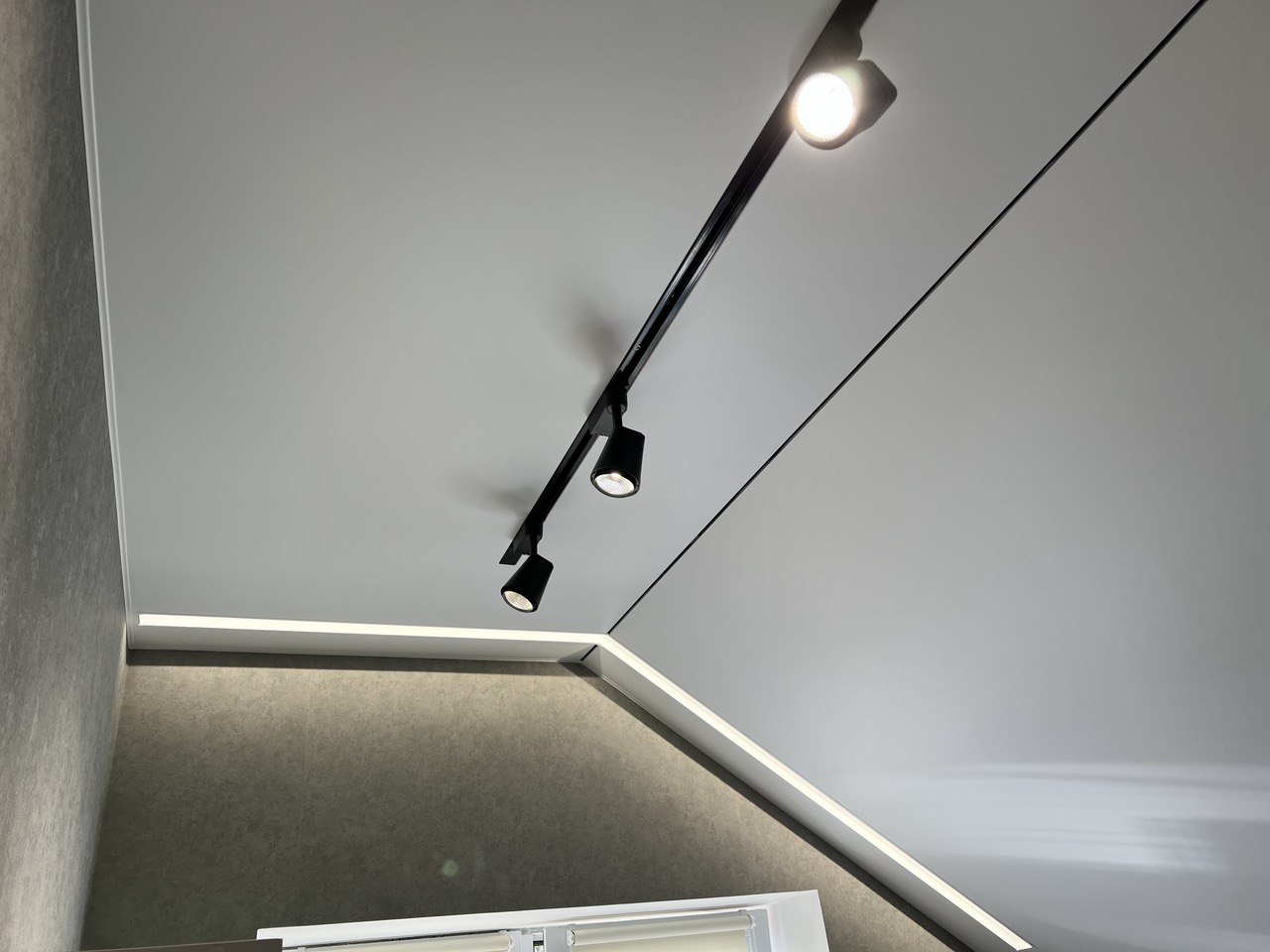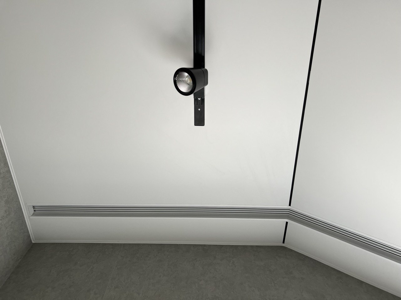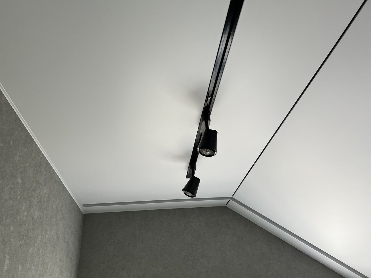 Особенностью комнаты является трековая система освещения, которая обеспечивает мягкий равномерный свет и позволяет менять направление света в зависимости от настроения и потребностей.