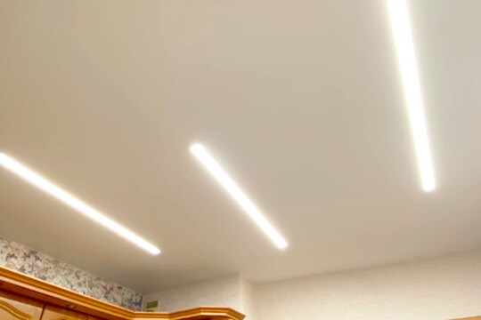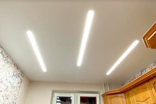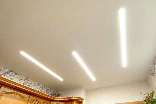 Устанавливая световые линии на кухне, не стоит переживать о том, что со временем они могут покрыться копотью или жиром и свет потускнеет, световые линии защищены полупрозрачной пленкой, которую можно очистить так же легко, как и натяжное полотно.