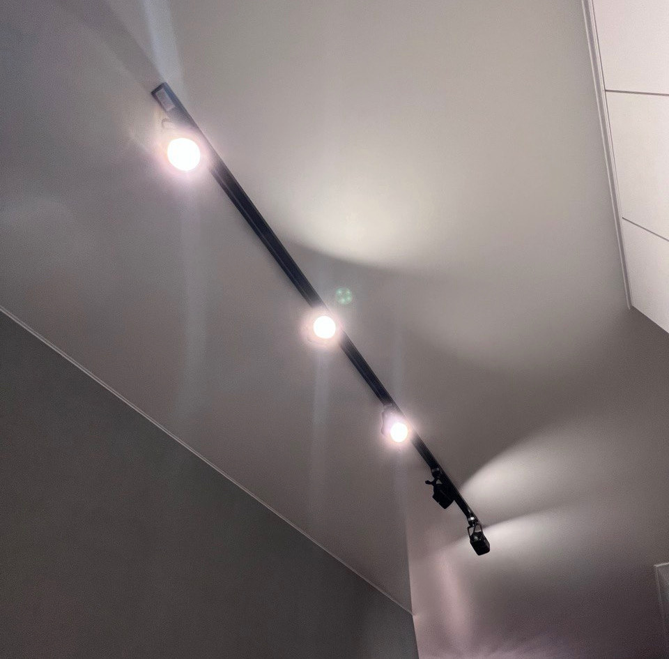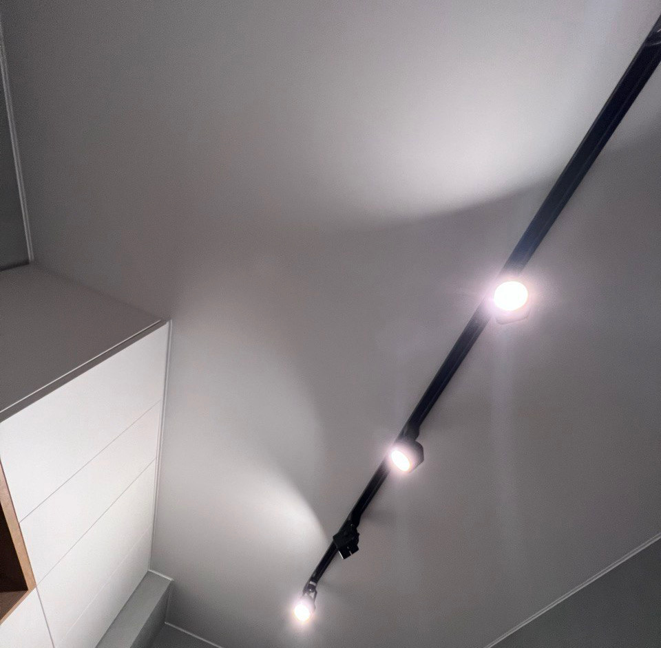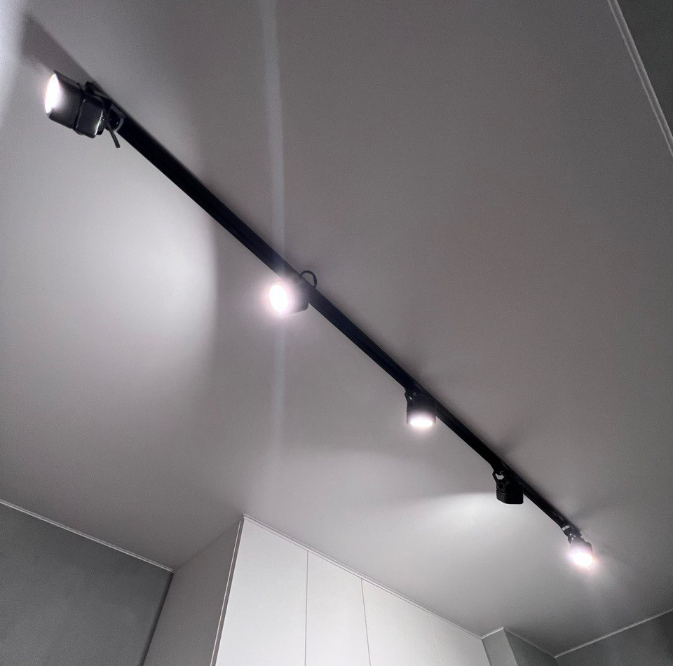 Особое внимание в данном проекте было уделено освещению. Мы разместили трековые светильники для равномерного и эффективного освещения пространства