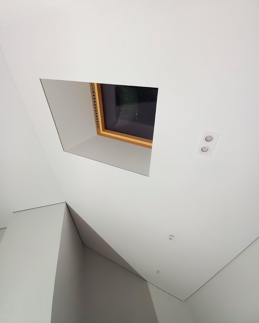 - с помощью матового натяжного полотна обошли углубление для окна, создавая чистую и завершённую линию.