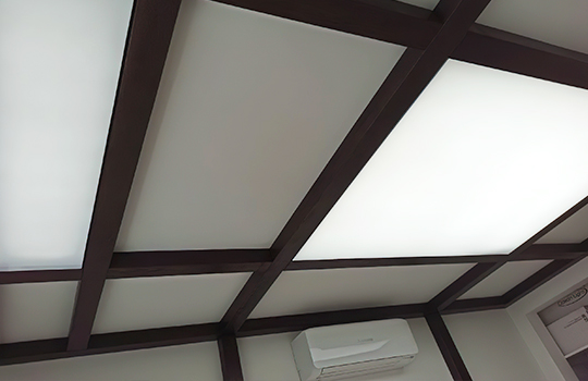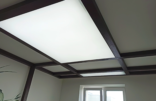 Освещением выступают светодиодные ленты. Матовая структура поверхности позволяет создать нежный световой эффект, мягко отражая световые лучи.