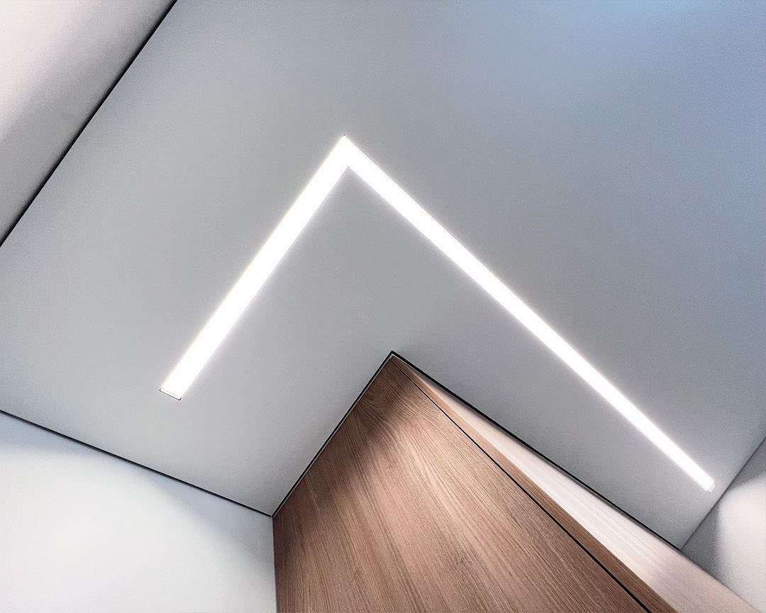 Световая Г-образная ниша SLOTT, теневое примыкание к стене и матовое натяжное полотно — это идеальный потолок!