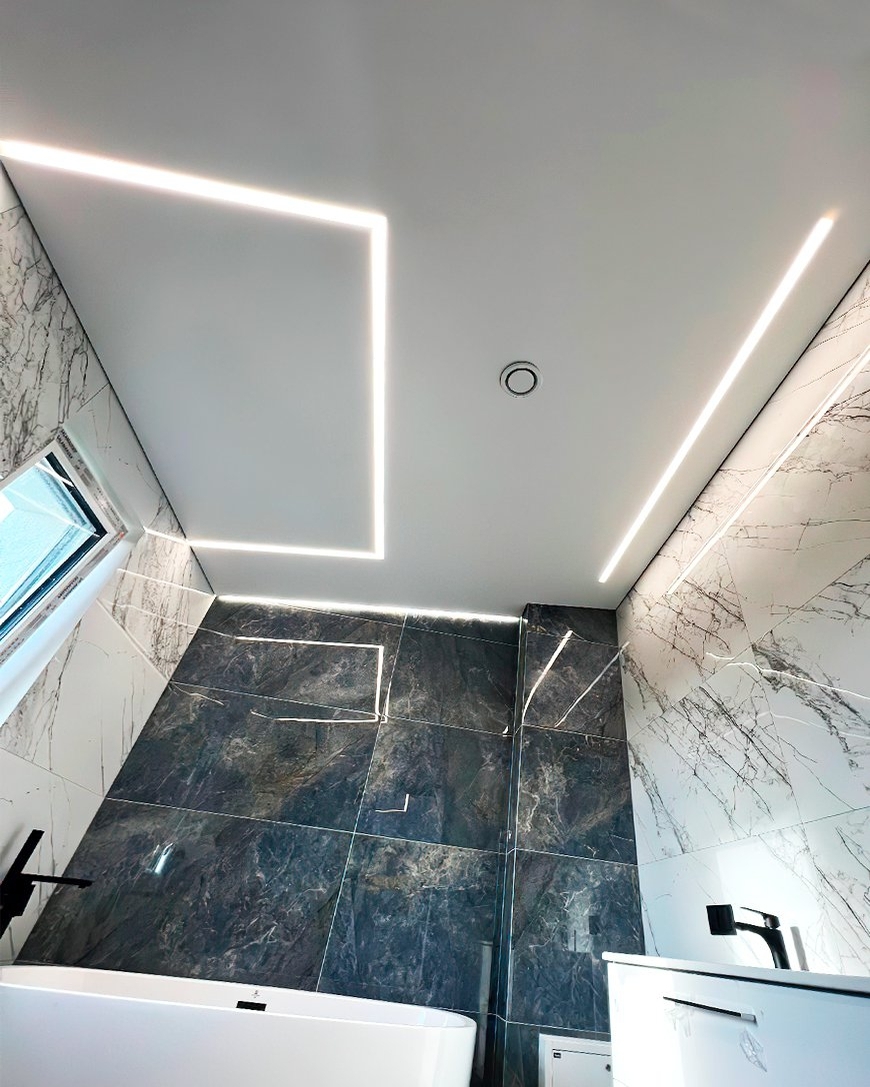 Парящий потолок и световые линии в ванной — это не просто красивое сочетание!