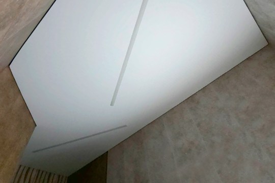 Поэтому для создания атмосферы уюта и комфорта, нашим заказчикам из Витебска, был выполнен матовый натяжной потолок со встроенными световыми линиями и с теневым примыканием к стене.
