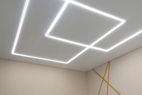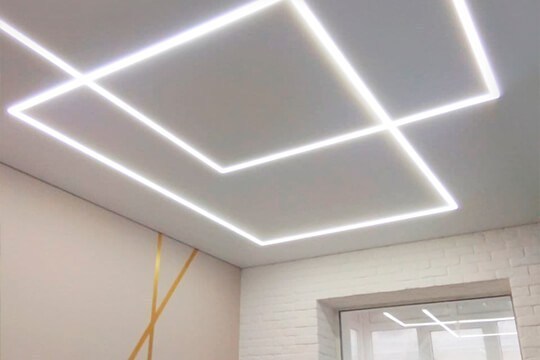 Таким образом, можно сказать, что необычная геометрия из световых линий выглядит эффектно, необычно, и является идеальным решением для установки в комнате отдыха.