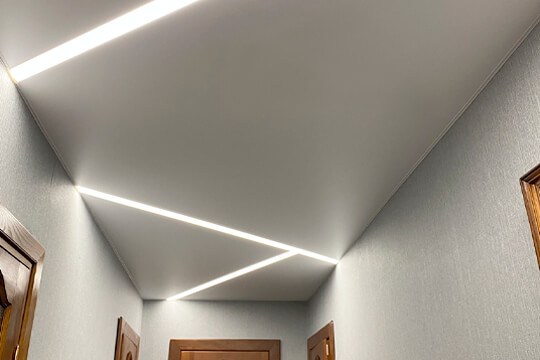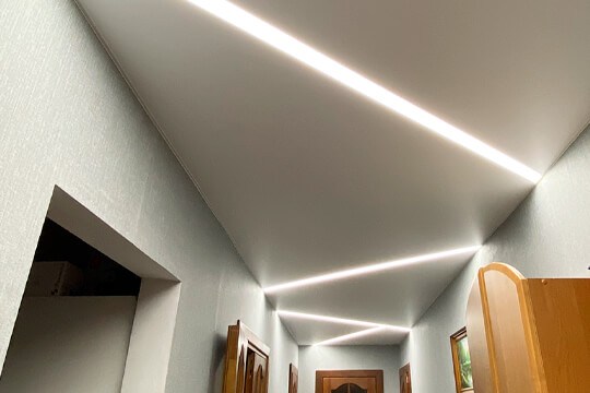 Не исключением стали наши заказчики из Минска, которые решили установить световые линии в прихожей на матовом полотне.