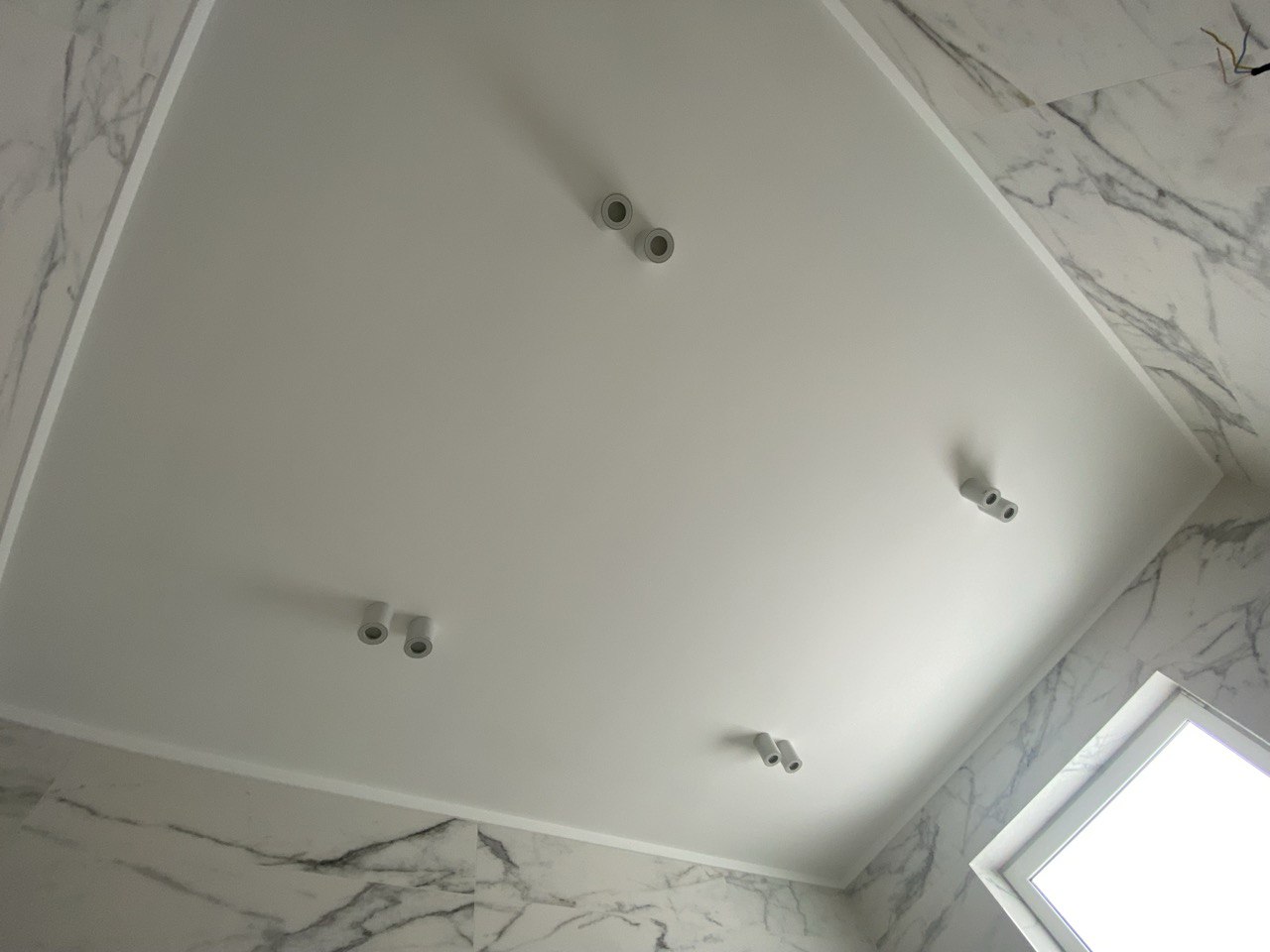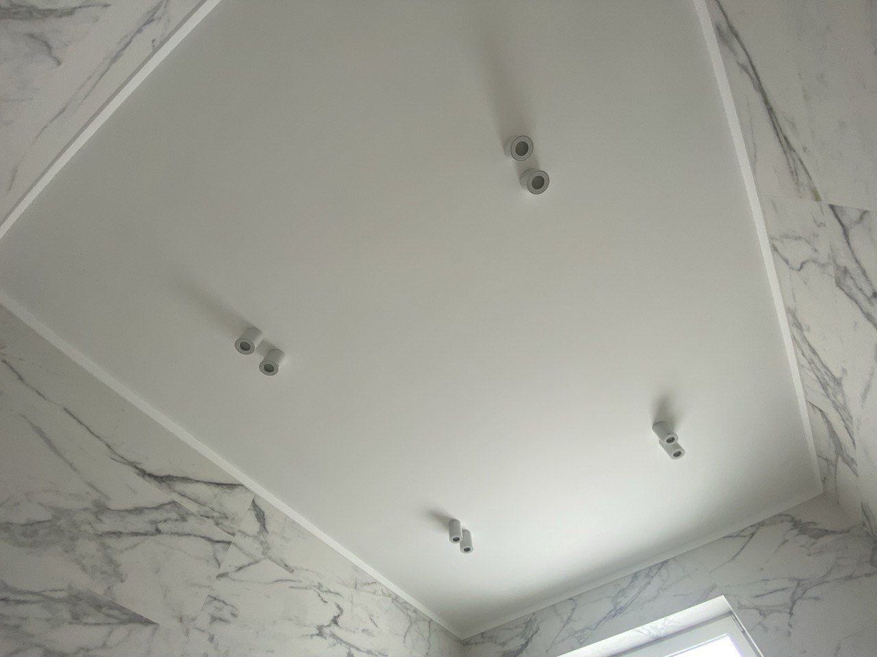 Освещение представлено четырьмя направленными светильниками-спотами, которые равномерно освещают все зоны ванной, обеспечивая комфорт и практичность.