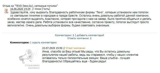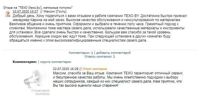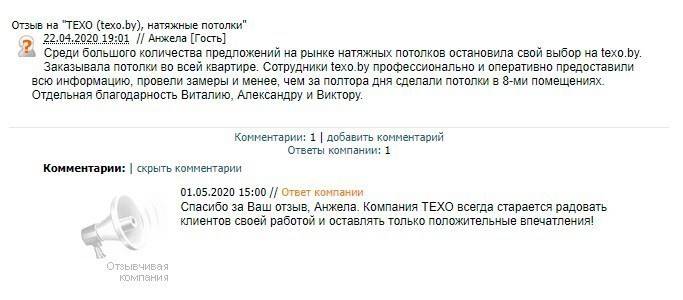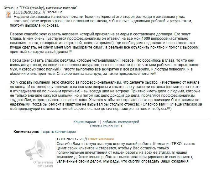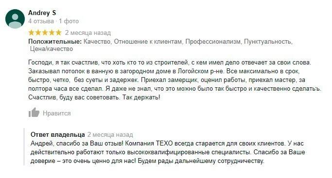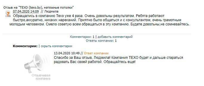 Натяжные потолки Texo » Отзывы Отзывы о компании ТЕХО Оставить отзыв Отзывы c независимых источников Google Яндекс Otzyvy.by