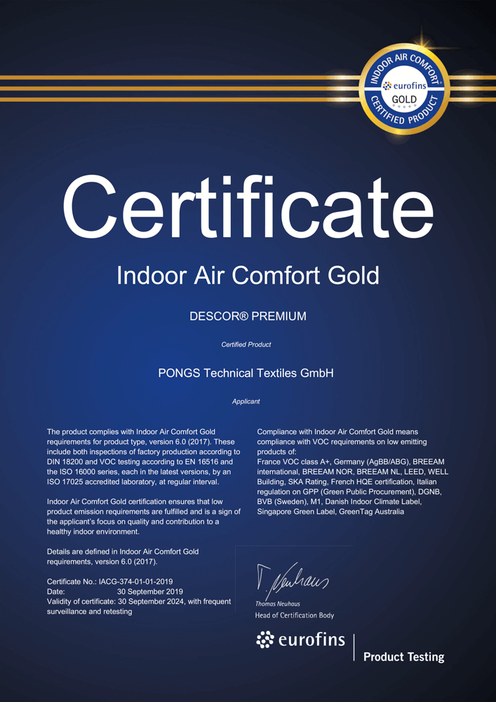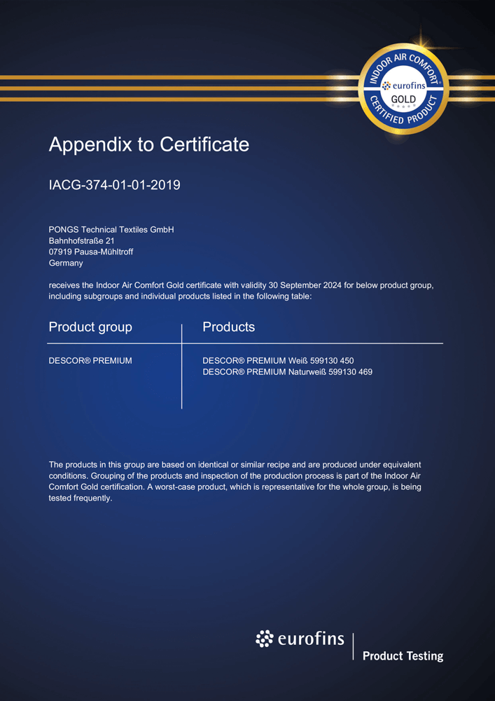 Полотна Descor изготавливаются из синтетической ткани плотного плетения. Пропитанные полиуретаном и специальными составами для защиты от воды, огня и противогрибков, эти материалы соответствуют высоким стандартам качества и безопасности