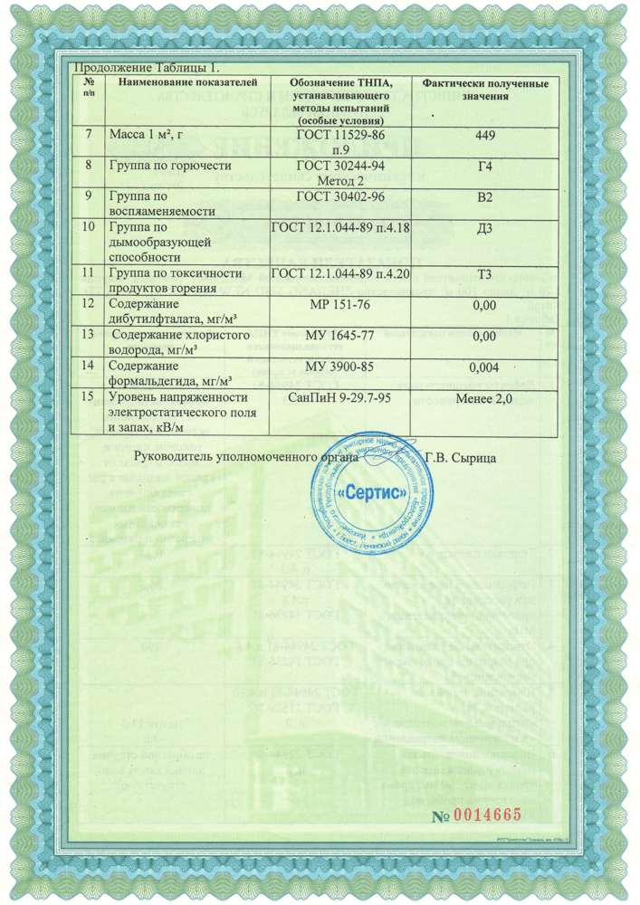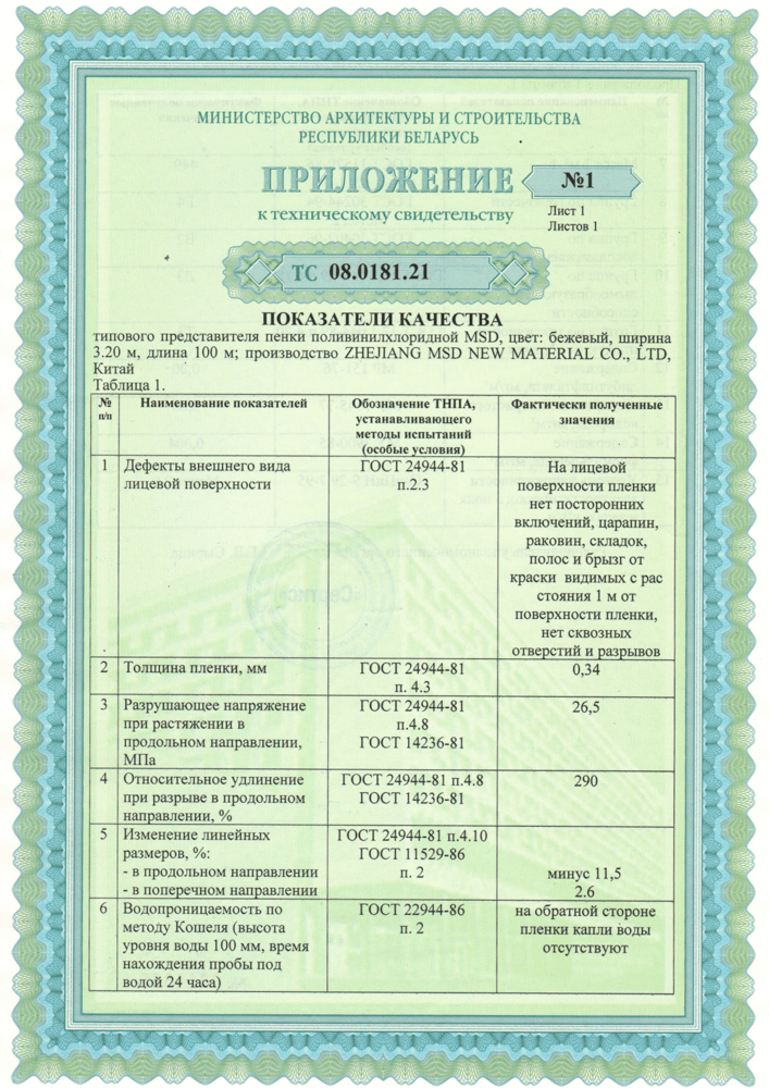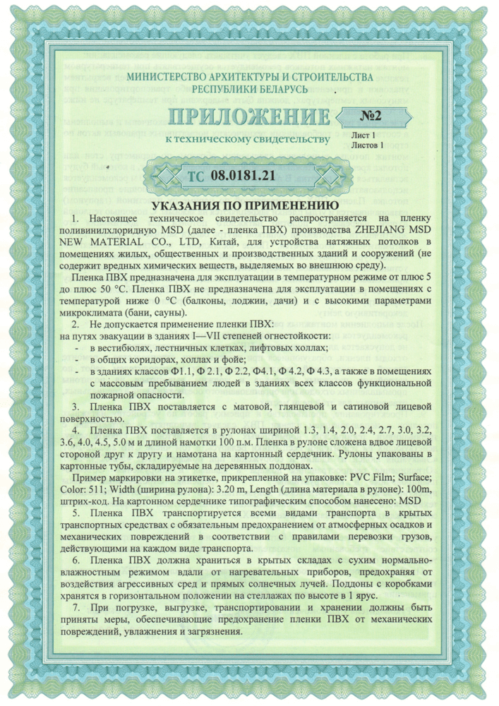 - подтверждение безопасности материала и отсутствия вредных веществ в полотне