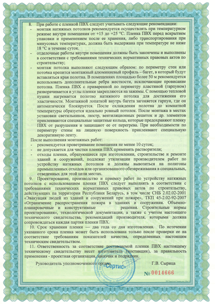 Сертификаты на наши натяжные потолки ТЕХО включают: