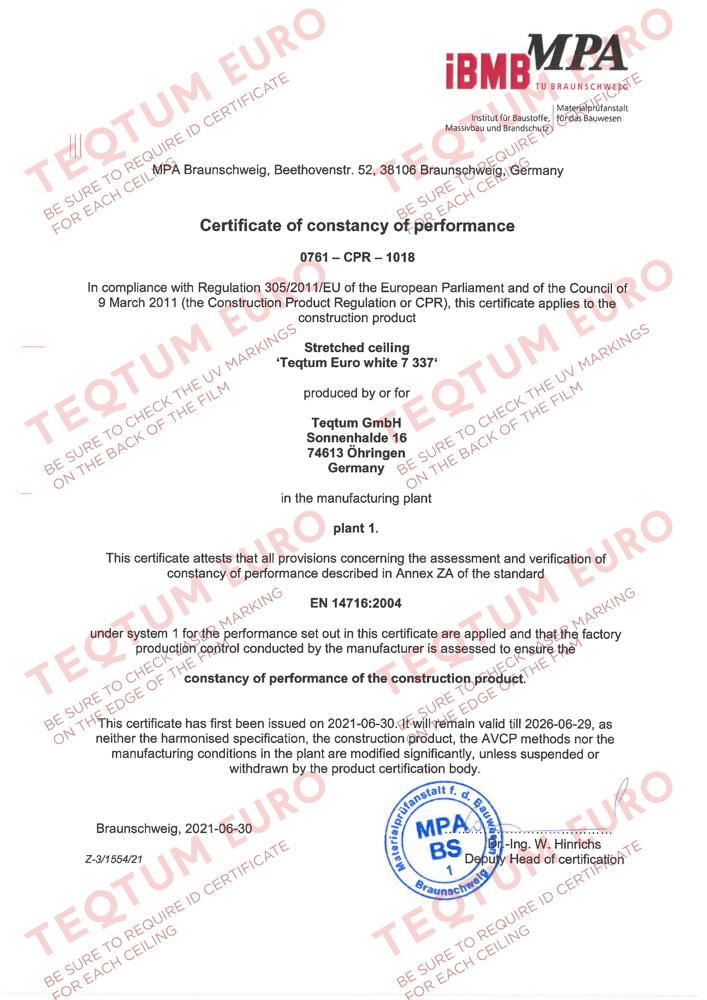 Пленка Teqtum прошла строгие тесты на экологическую безопасность и пожароустойчивость, что позволяет использовать ее как в промышленных помещениях, так и в жилых или учреждениях с повышенными требованиями к безопасности