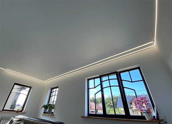 Натяжные потолки со световыми линиями